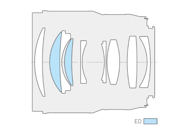 Jeśli chodzi o konstrukcję optyczną, mamy tutaj do czynienia z 9 soczewkami ustawionymi w 8 grupach. Dwa elementy wykonano z niskodyspersyjnego szkła ED. Wewnątrz znajdziemy jeszcze kołową przysłonę o dziewięciu listkach, którą możemy domknąć maksymalnie do wartości f/22.