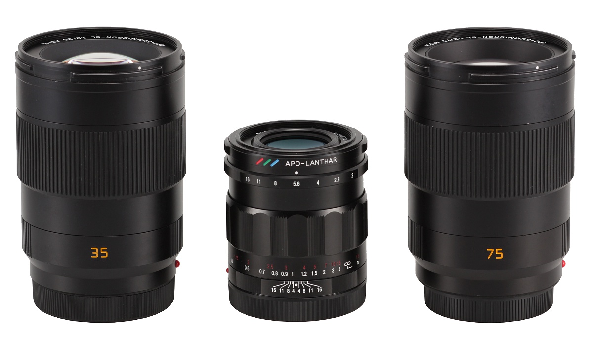 Żeby pokazać, jak odmiennie podejście do projektowania swoich stałek o świetle f/2.0 ma Leica, możemy zaprezentować jeszcze zdjęcie dwóch APO-Summicronów-SL o ogniskowych 35 i 75 mm oraz posiadającego takie samo światło Voigtlandera Apo-Lanthara 2/50.