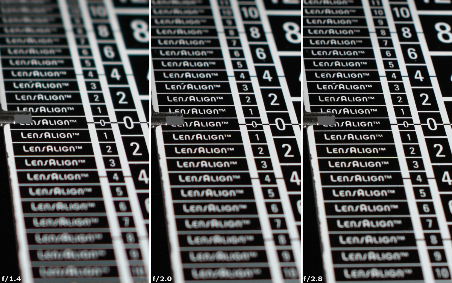 Jakby tego było mało, aberrację sferyczną widać też bezpośrednio w pomiarach rozdzielczości. Gdy ustawimy ostrość jak najlepiej na przysłonie f/1.4, a potem, nie zmieniając ustawień ogniska, zaczniemy przymykać przysłonę, MTF-y będą rosnąć, ale nie osiągną swoich maksymalnych wartości i zatrzymają się przed poziomem 80 lpmm. Natomiast, gdy ustawimy najlepiej ostrość na przysłonie f/4.0 i, ponownie, nie ruszając ogniska, będziemy mierzyć rozdzielczość na pozostałych przysłonach, w przedziale od f/2.0 do f/4.0 bez problemów przekroczymy 80 lpmm, a momentami będziemy zbliżać się nawet do 90 lpmm. Jednocześnie rezultat uzyskany na f/1.4 ledwo przekroczy 50 lpmm, a więc będzie prawie 20 lpmm niższy niż maksymalne wyniki, jakie można uzyskać na tej przysłonie. To zachowanie bardzo jasno pokazuje, że Sigma ma zauważalne problemy z aberracją sferyczną.