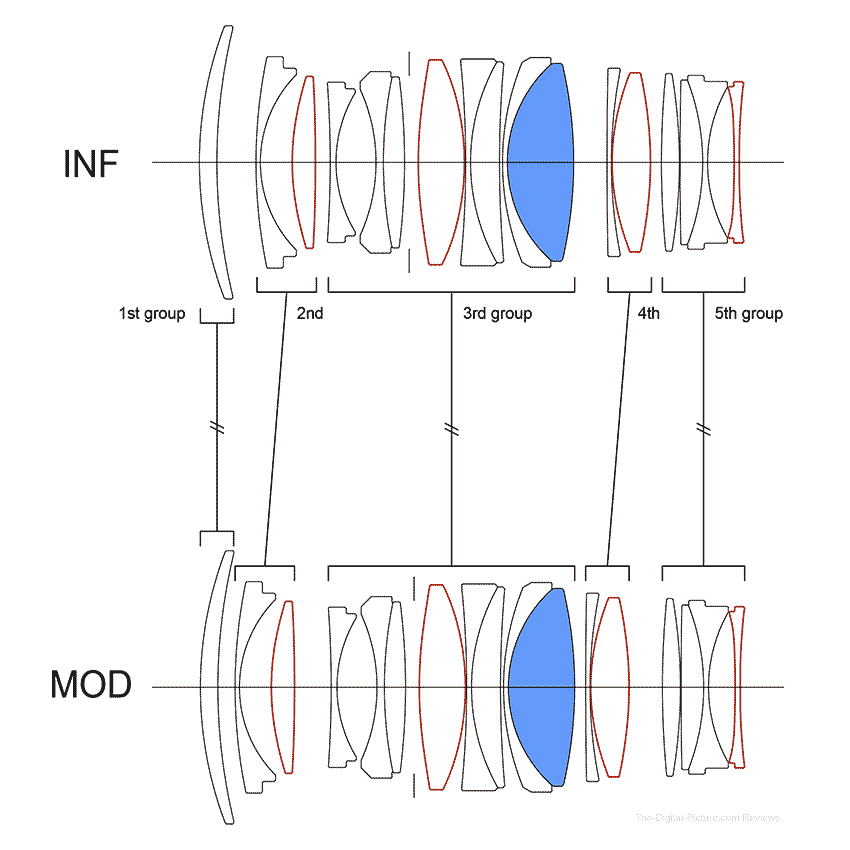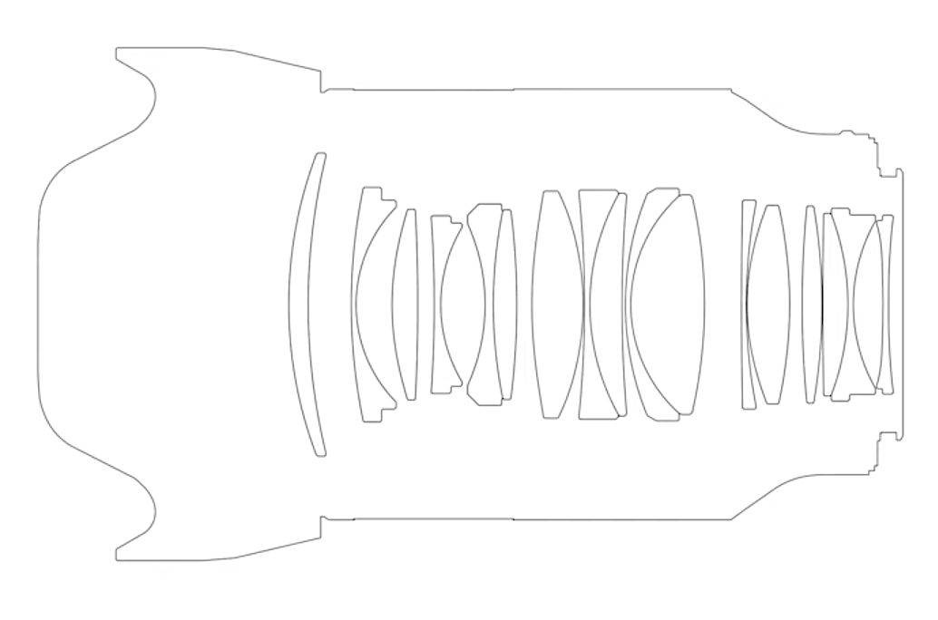Jeśli chodzi o konstrukcję optyczną, w obiektywie łącznie zastosowano 17 soczewek wchodzących w skład 13 grup optycznych. Jeden element wykonano ze szkła niskodyspersyjnego SLD, natomiast czterem innym nadano kształt asferyczny. Wewnątrz natrafimy jeszcze na kołową przysłonę o 11 listkach, którą możemy domknąć maksymalnie do wartości f/16.