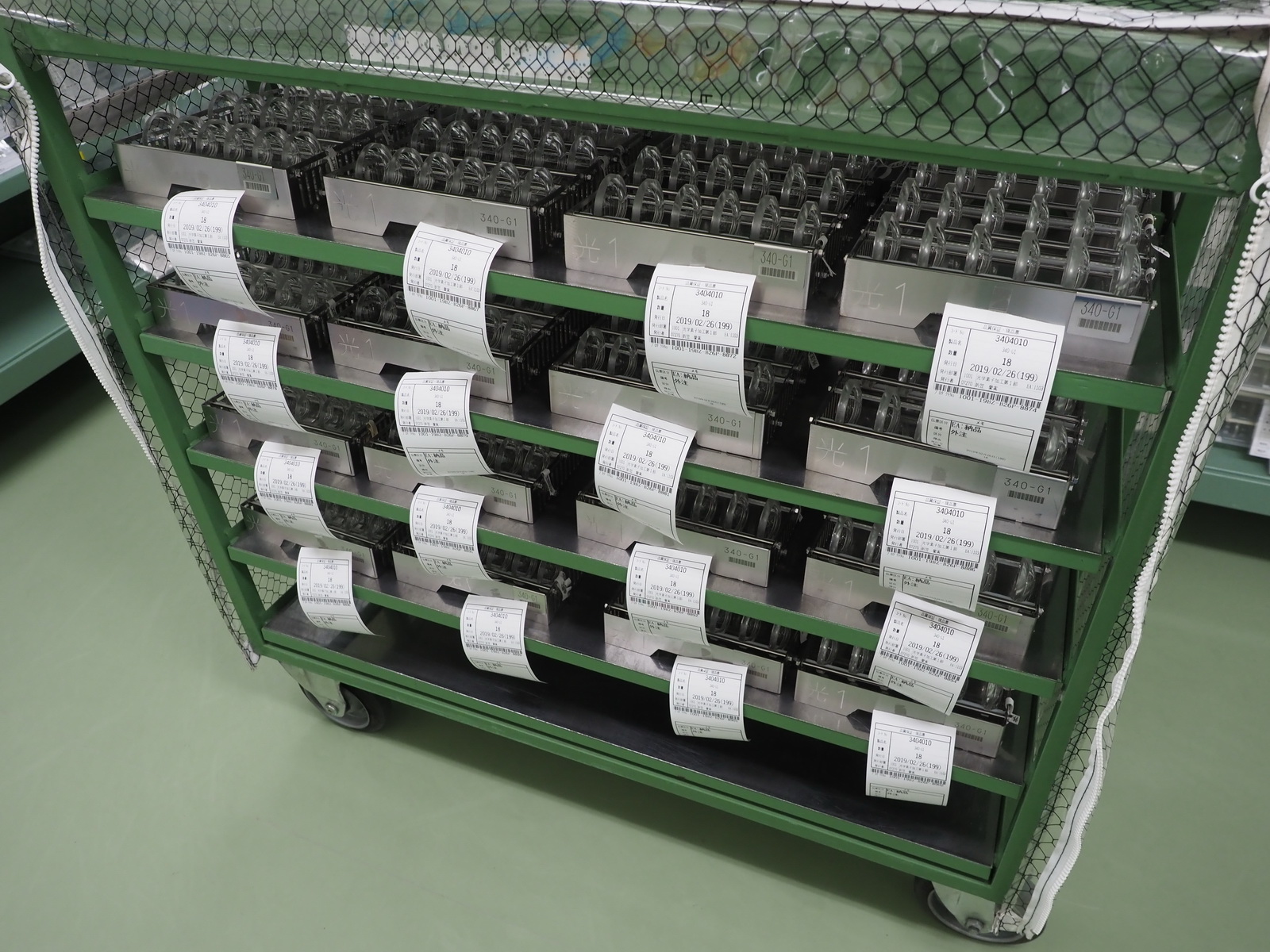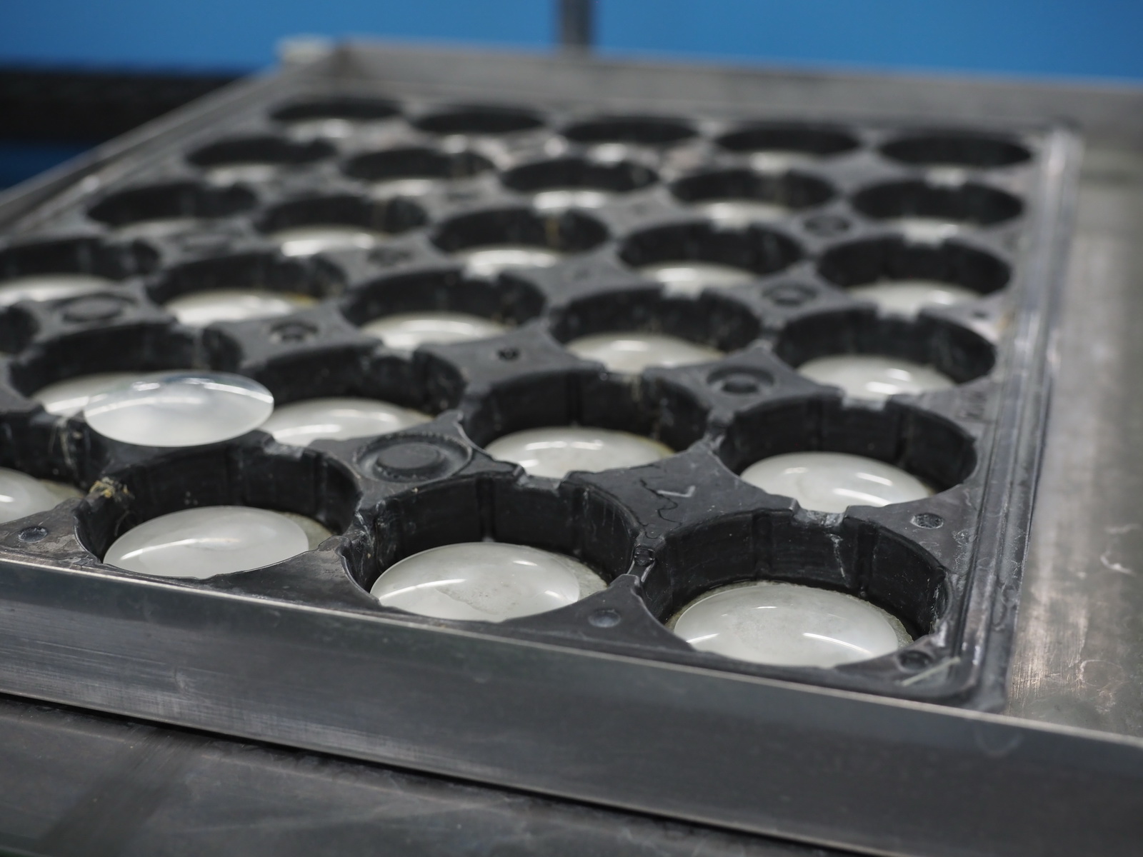 Na koniec pozostaje już tylko nałożenie powłok antyodbiciowych. Wszystkie soczewki trafiają więc do działu, w którym cały personel stanowią panie. Bowiem damskie oko dużo lepiej od męskiego jest w stanie wypatrzeć wszelkie skazy i niejednorodności na soczewkach. Gdy nie ma zastrzeżeń co do jakości wykonania elementu, jest on układany na specjalnym stelażu, który następnie trafia do specjalistycznej maszyny odpowiedzialnej za nałożenie kilkunastu powłok z każdej strony soczewki.