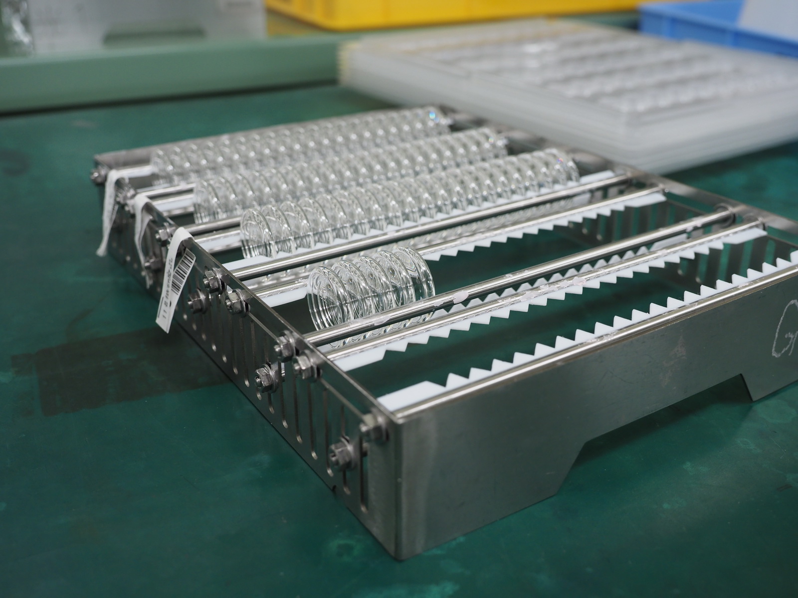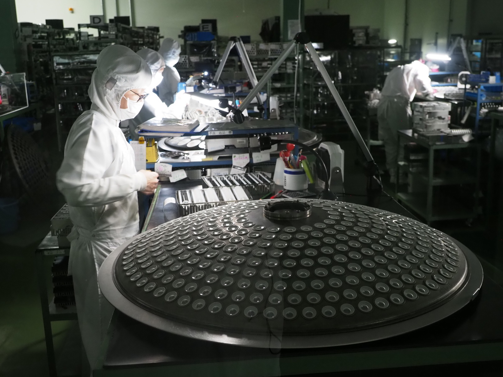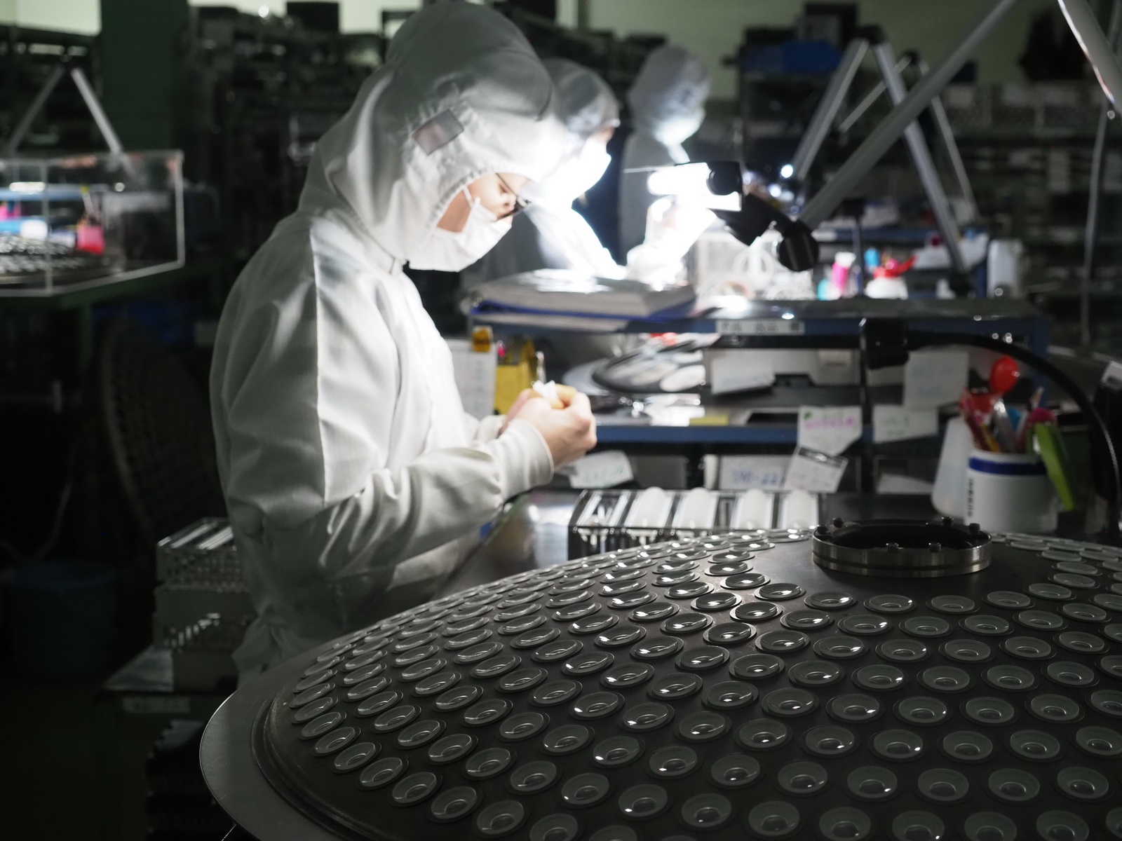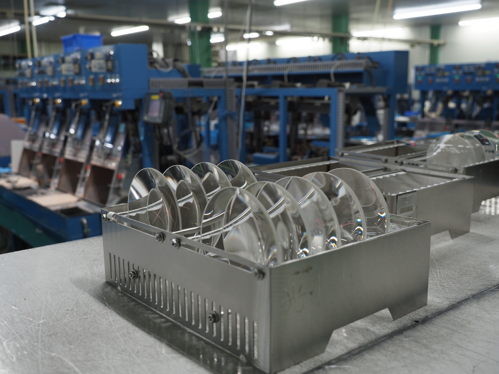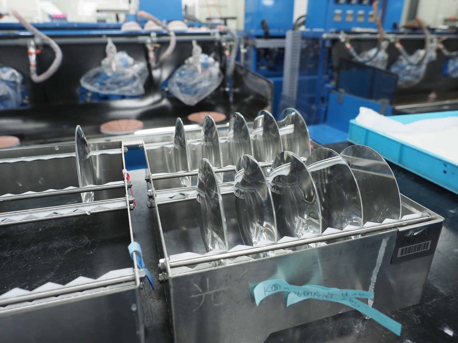 W fabryce zdecydowano się wydzielić sekcje, w których odbywa się produkcja soczewek specjalnych. W jednej z nich umieszczono specjalistyczne maszyny nadające elementom optycznym nietypowe kształty.