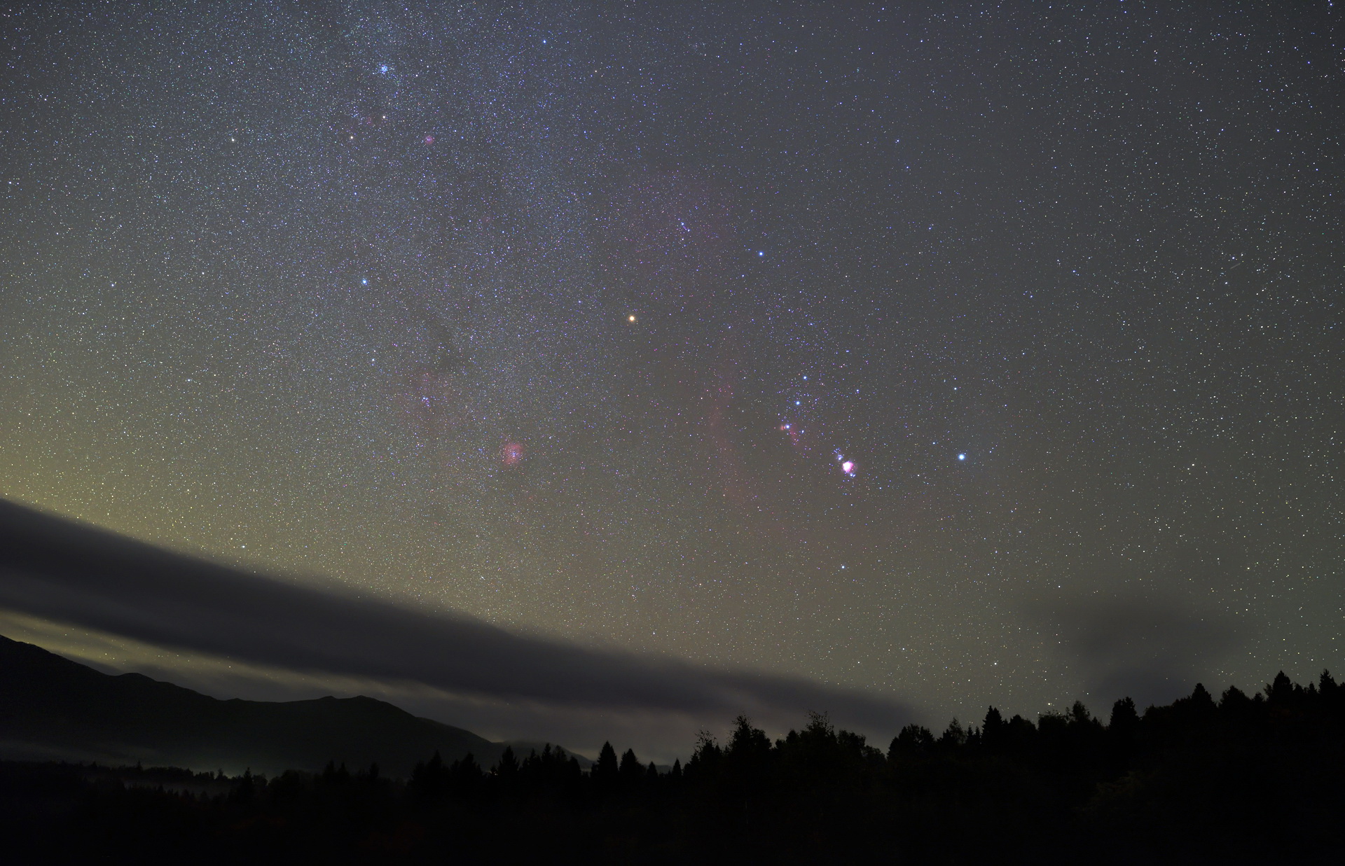 Te ogniskowe dają nam już całkiem spore możliwość w rejestrowaniu dużych obiektów wewnątrz Drogi Mlecznej takich jak mgławice lub gromady otwarte. W ogniskowej 28-50 mm mieści się większość konstelacji lub możemy za ich pomocą robić przeglądowe ujęcia obiektów w nich zawartych (oczywiście tych większych). Trzeba pamiętać, że w przypadku fotografowania takimi ogniskowymi potrzebny będzie wspomniany montaż paralaktyczny, który będzie niwelował pozorny ruch sfery niebieskiej.